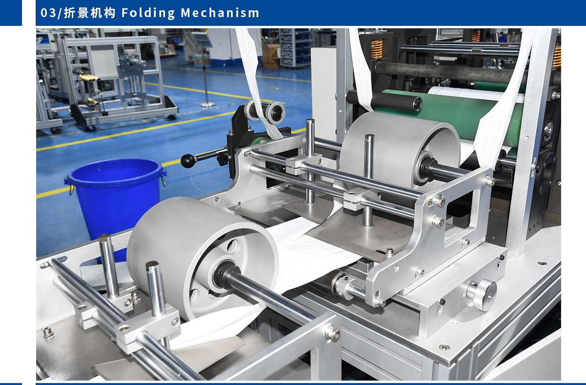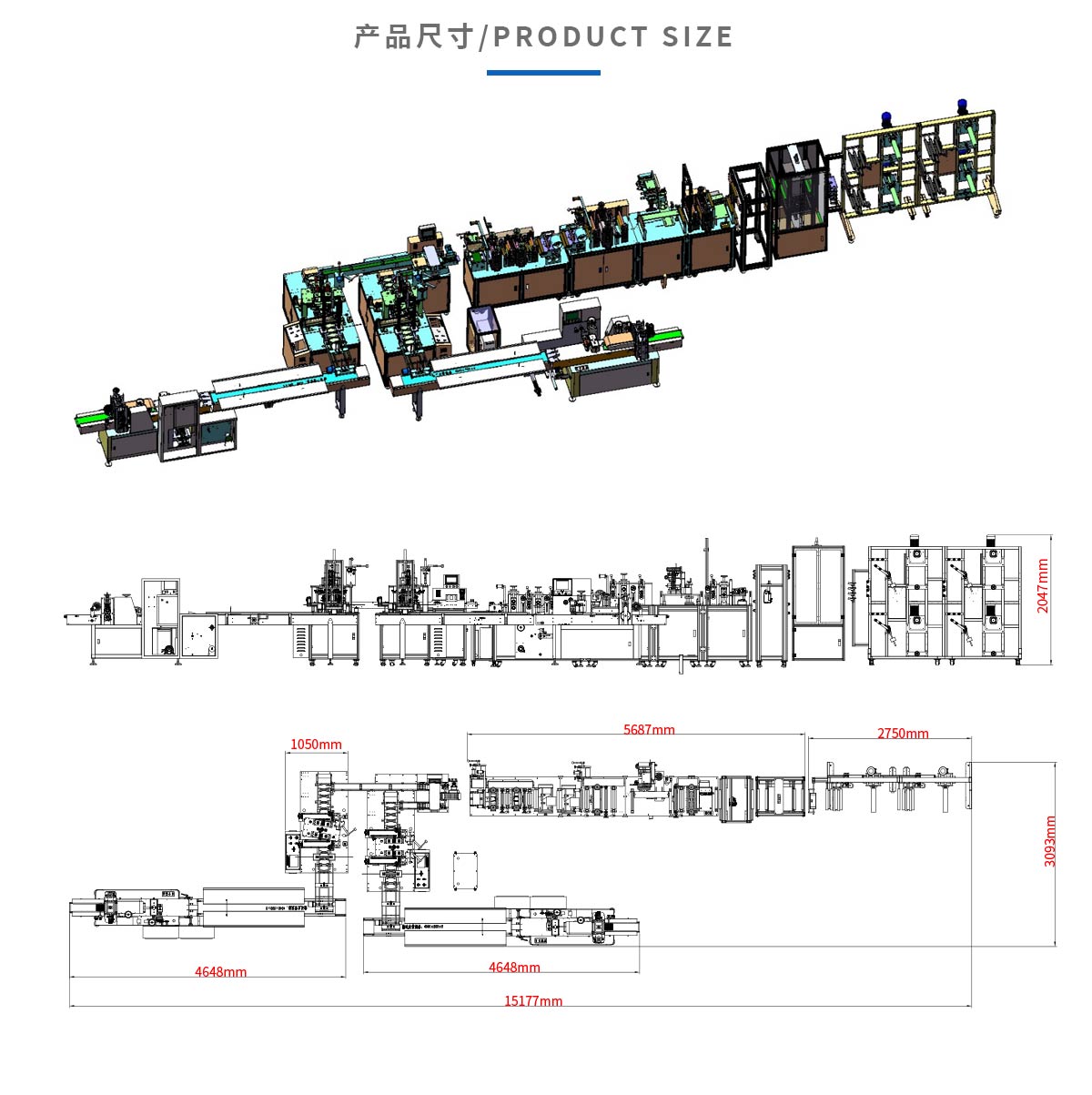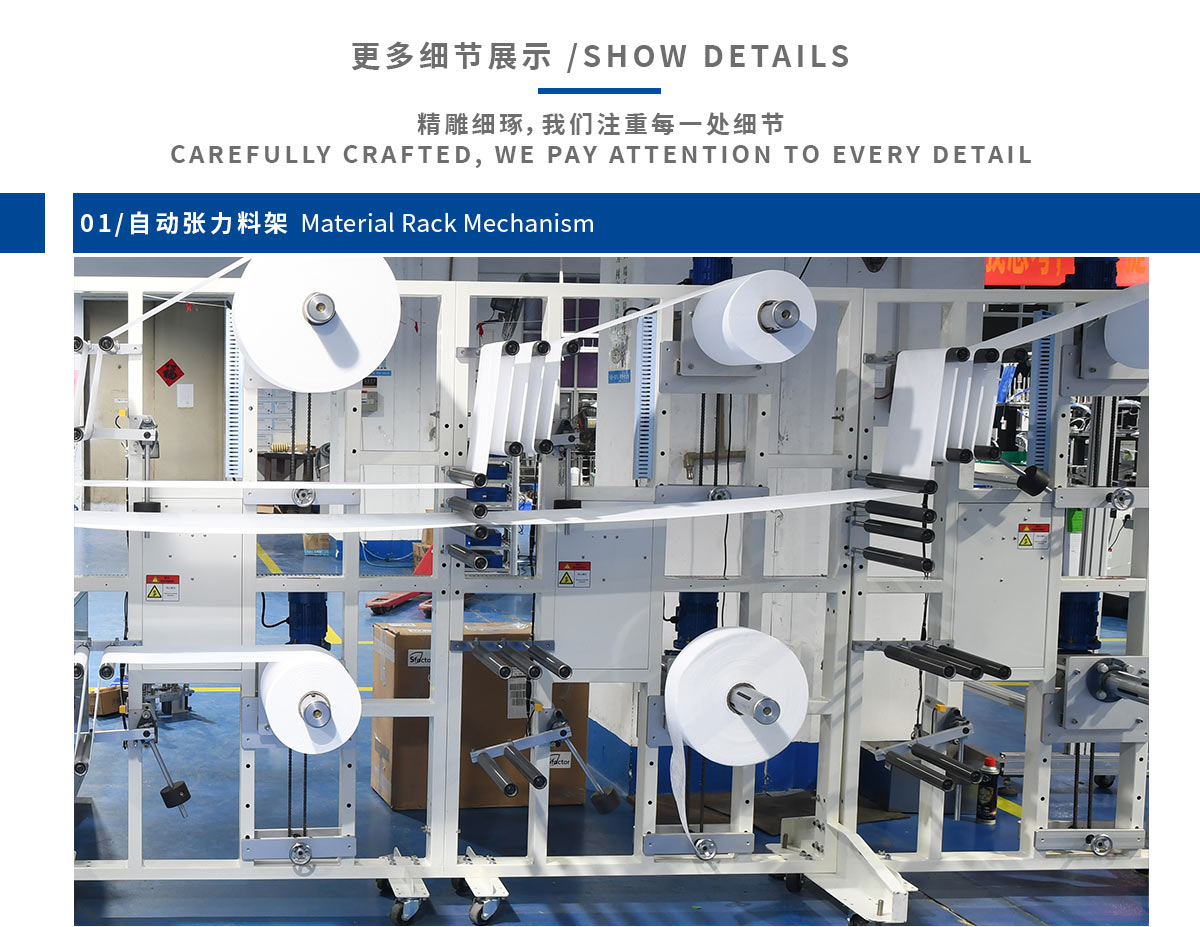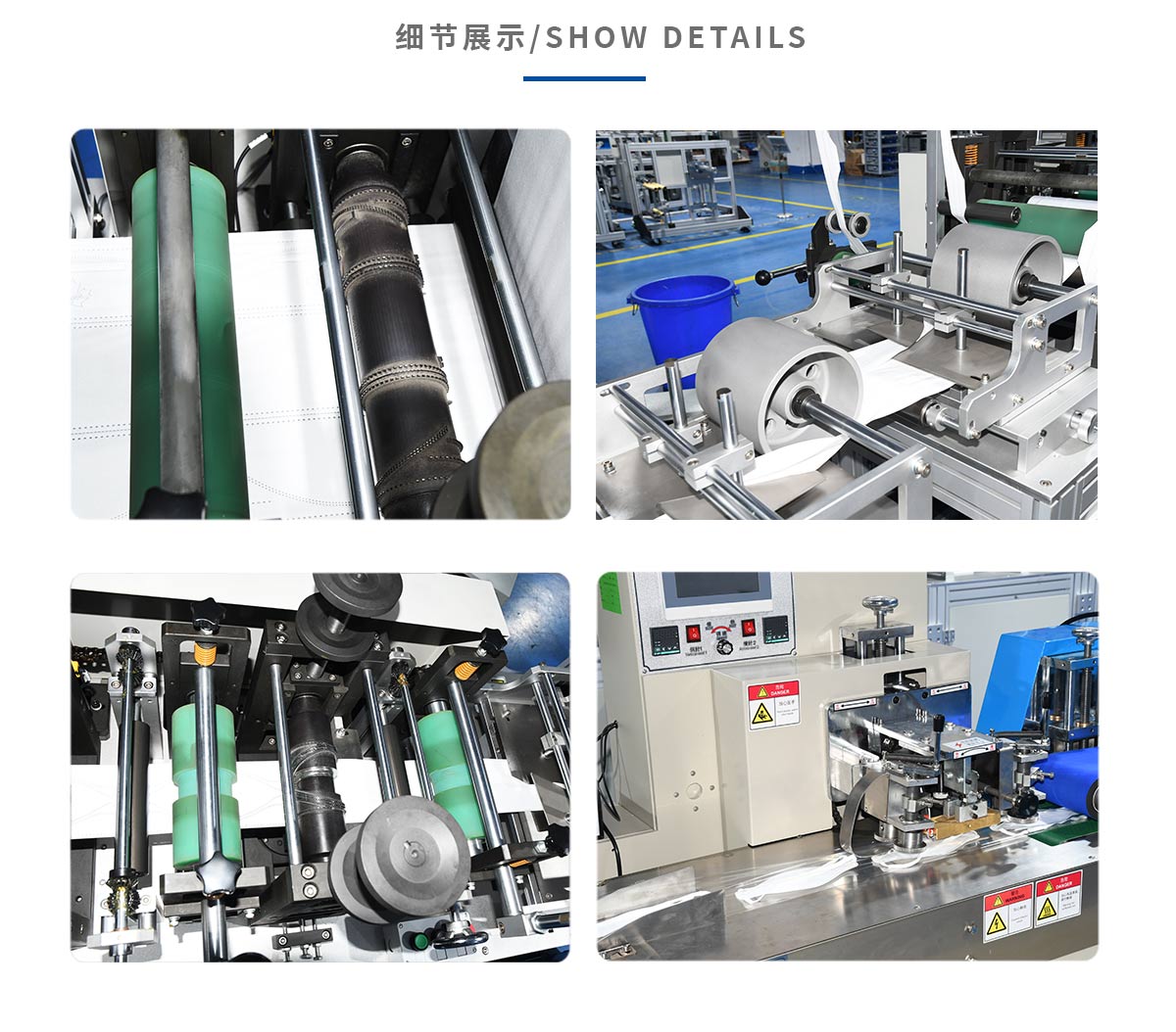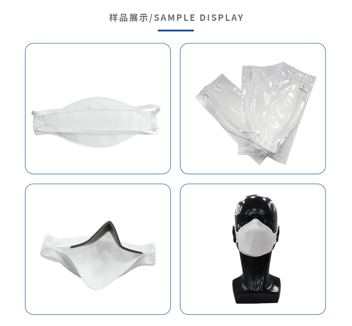 鱼形一拖二机器:本机台是一台全自动化生产三折鱼形口罩的机器。从口罩本体生产到耳带熔接,鼻线熔接直至出成品,都是自动化,不需要人工操作。整机采用铝合金结构美观不生锈,PLC微电脑控制,稳定性高。
