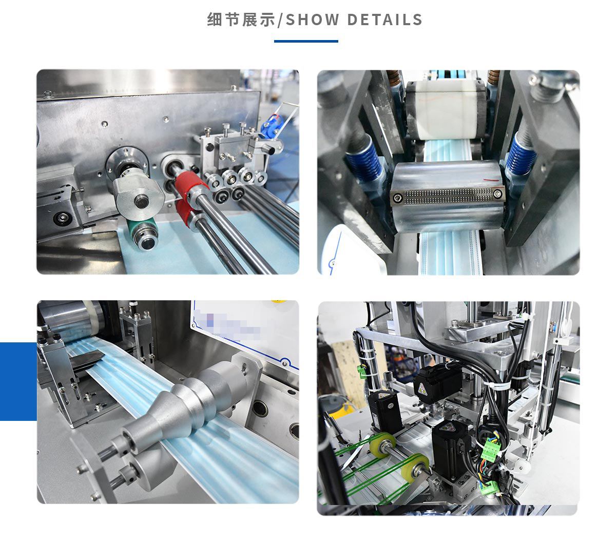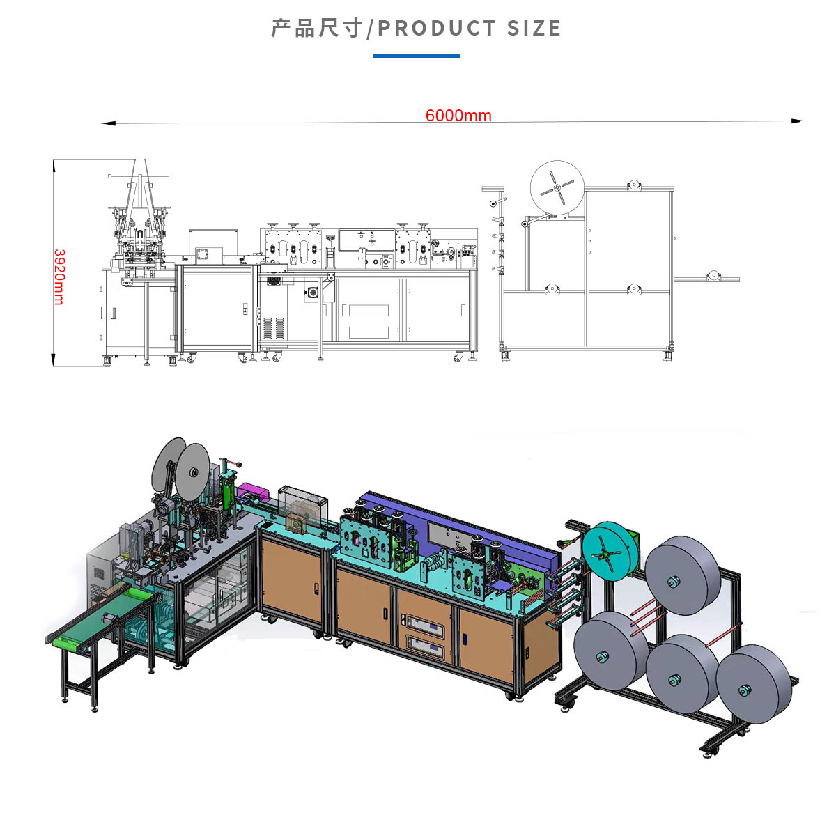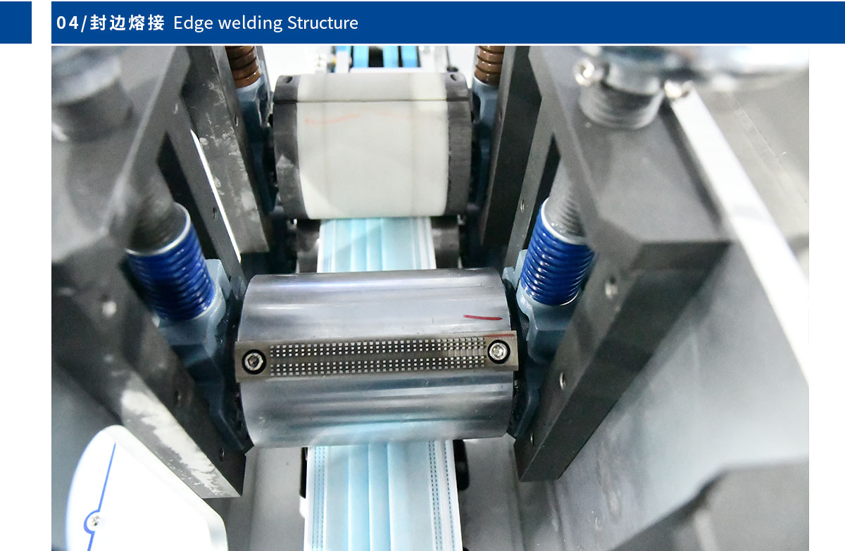 本机台是一台全自动化生产平面口罩的机器,由1台本体加1台耳带机组成。从口罩本体生产到耳带熔接,鼻线熔接直至出成品 ,都是自动化,不需人工操作。适用于内耳带口罩生产。