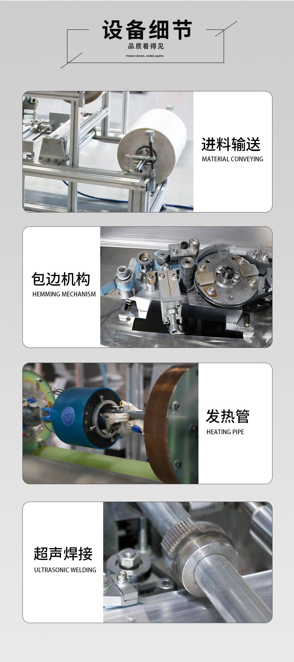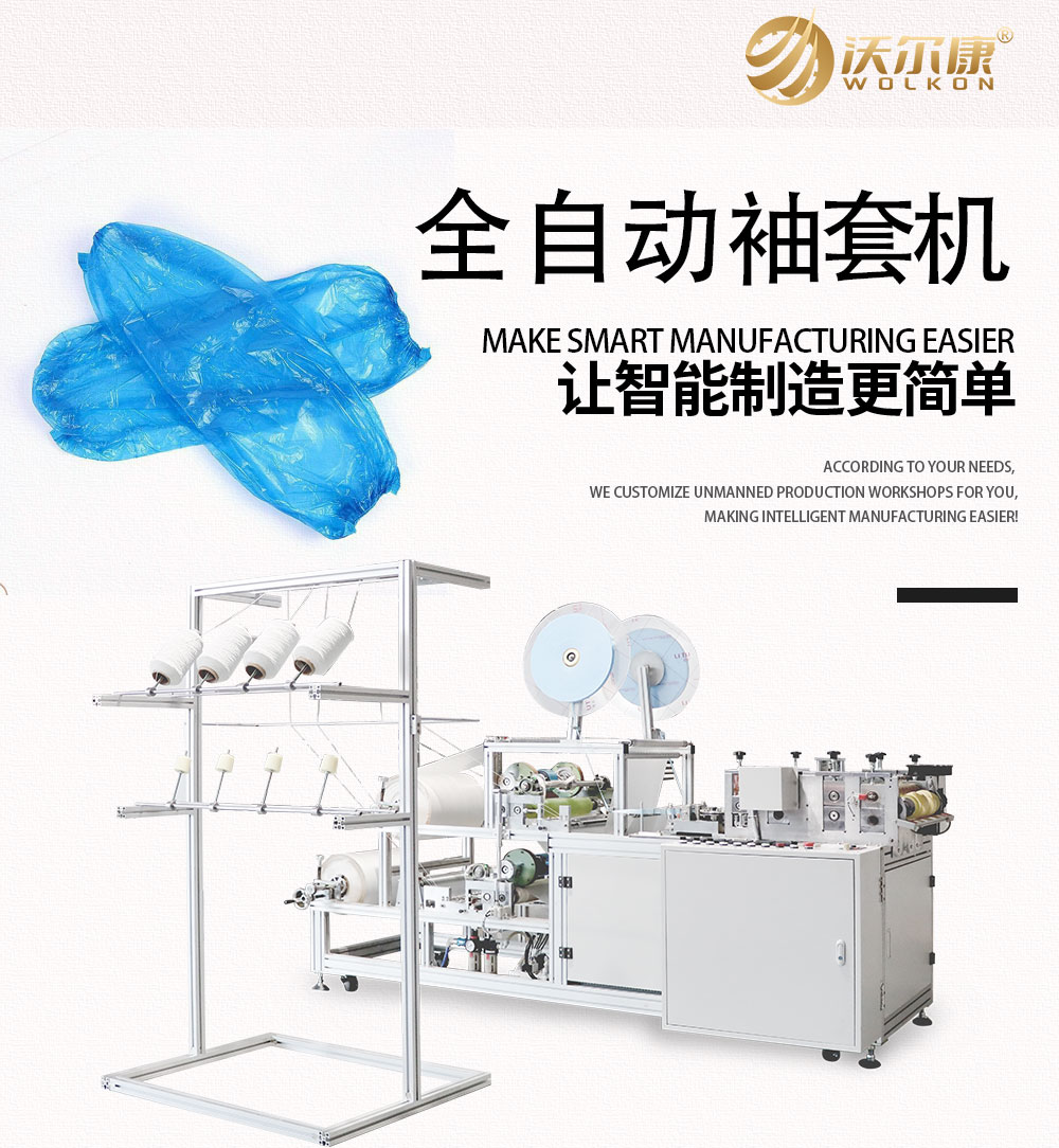 一次性塑料袖套制造机,可以生产PE和CPE方袖套,质量好,价格低,产量高的优点,完全可以取代手工袖套,节约人工,降低成本,可以根据客户的要求订做,本机台为自动化。从原料送入至层品到产品计数全程自动化作业。采用超大功率超声波焊接,将方袖套的两端及橡筋有效固定。从原料送入到成品全程自动化作业全程作业只需一人。